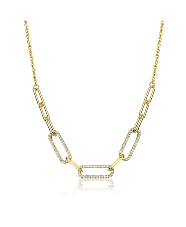 14K Gold Plated Clear Cubic Zirconia Link & Chain Necklace