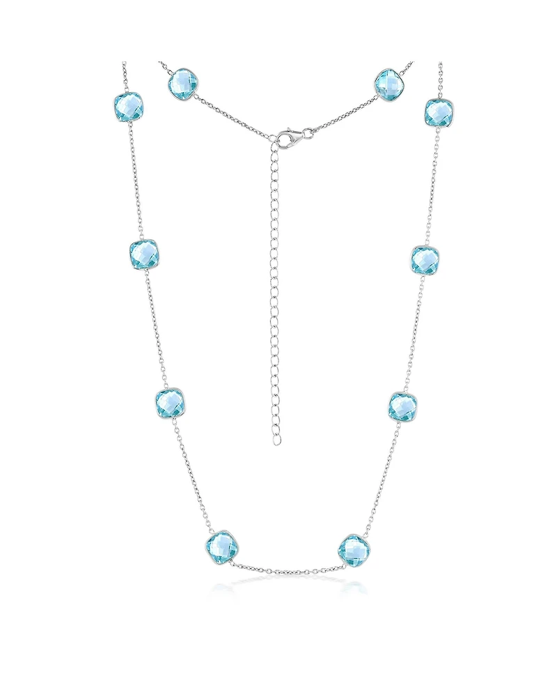 Sterling Silver, Square Bezel-Set, Gem Station Necklace