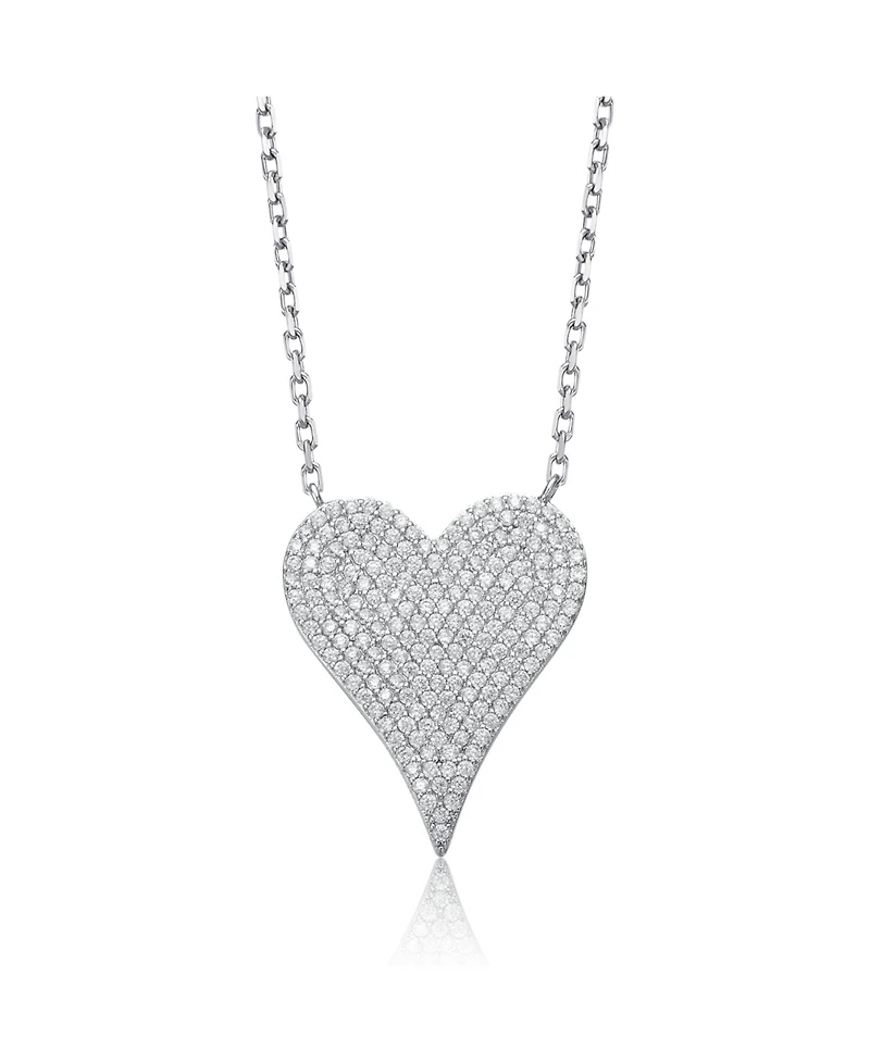 Sterling Silver with Pave Cubic Zirconia Heart Layering Necklace