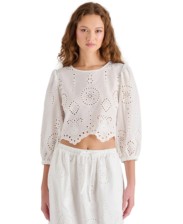 Steve Madden Women's Meera Cotton Crewneck Eyelet Top
