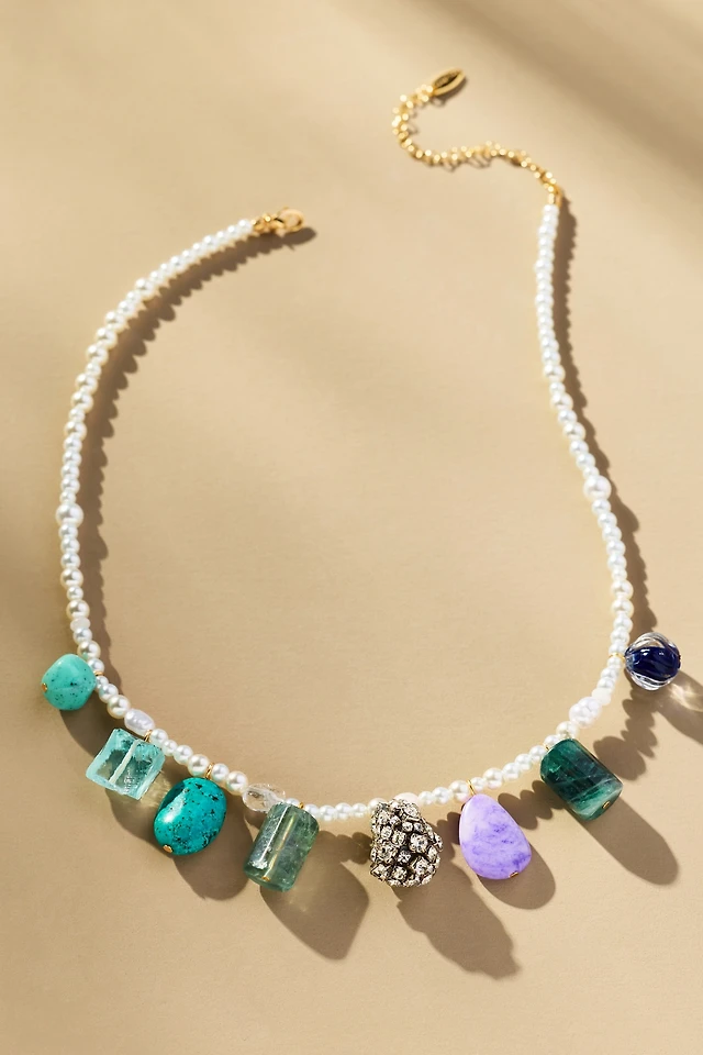 Stone Beaded Pearl Necklace
