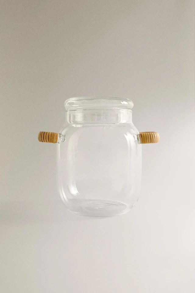 STORAGE JAR WITH RATTAN HANDLES