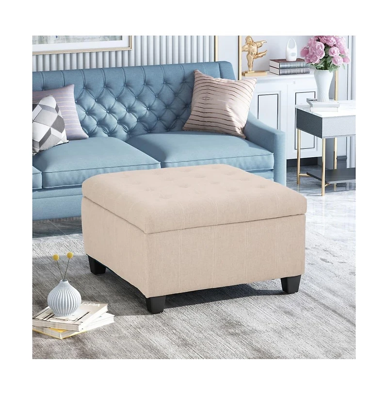Storage Ottoman with Button-Tufted Lid, Upholstered Square Bench for Living Room, Bedroom, Entryway-The Pop Home