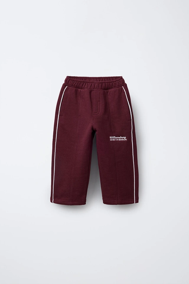 EMBROIDERED STRAIGHT PLUSH PANTS