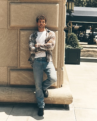 Our new soft wash jeans are breathable and light-as-air for your most comfortable denim ever. Straight through the thigh and leg, these light wash jeans feature a zip fly, one button closure, belt loops, and traditional five pocket styling. Plus, they are complete with paint splatter details for a worn, vintage look.