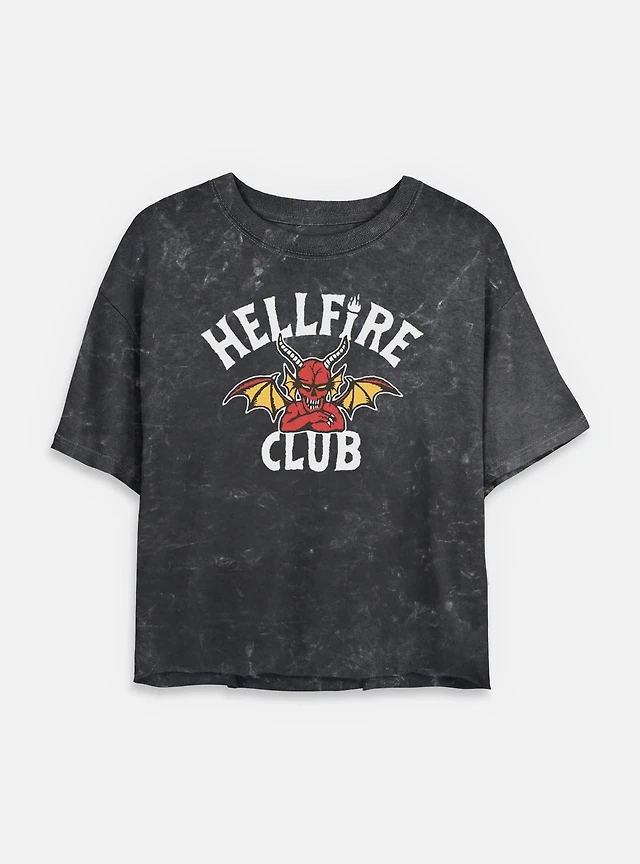 Stranger Things Devil Hellfire Club Logo Womens Mineral Wash Crop T-Shirt