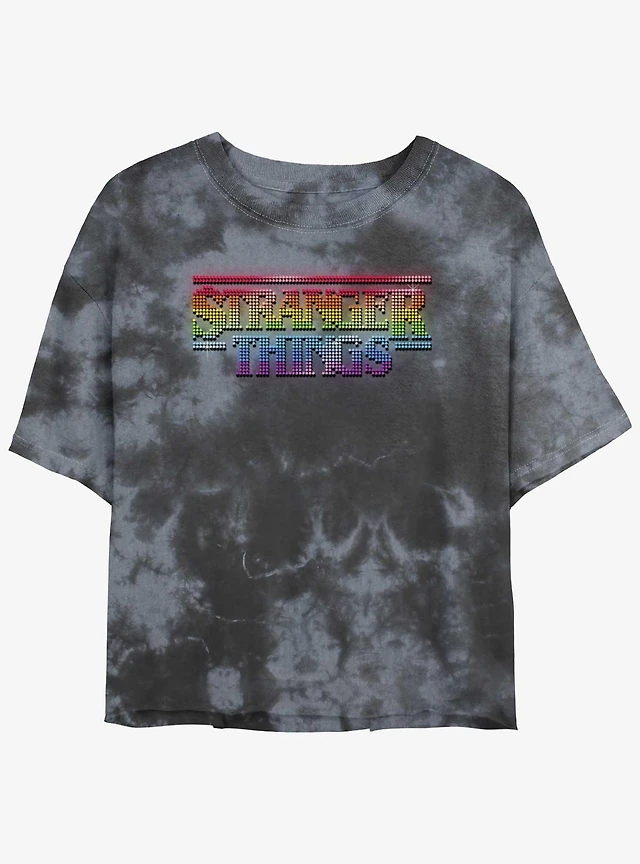 Stranger Things Rainbow Logo Tie-Dye Womens Crop T-Shirt