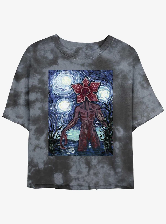 Stranger Things Starry Demogorgon Tie-Dye Womens Crop T-Shirt