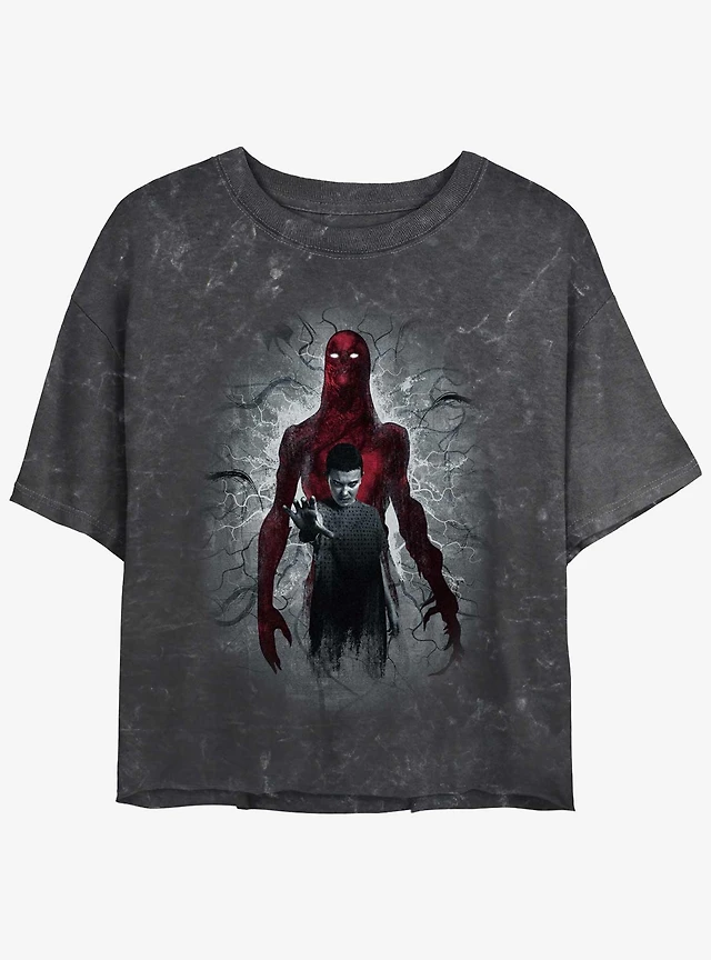 Stranger Things Vecna and Eleven Mineral Wash Crop Girls T-Shirt