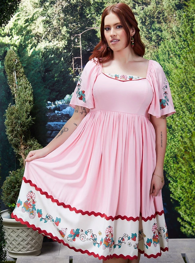 Strawberry Shortcake Embroidered Plus Midi Dress - BoxLunch Exclusive