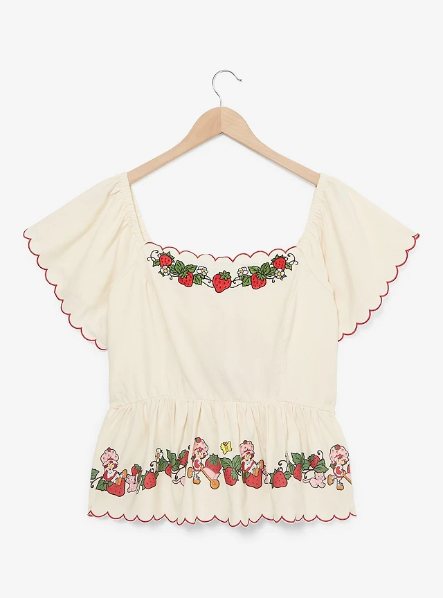 Strawberry Shortcake Ruffled Tie-Back Women's Plus Blouse - BoxLunch Exclusive