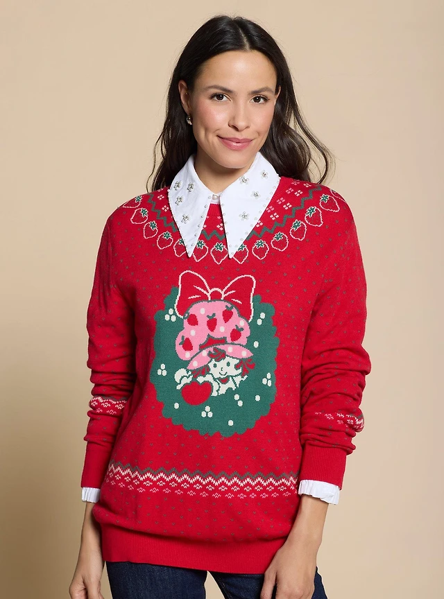 Strawberry Shortcake Wreath Portrait Holiday Sweater - BoxLunch Exclusive