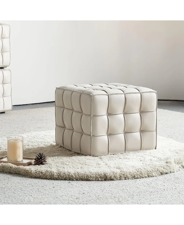 Streamdale 17.32"W Genuine Leather Tufted Ottoman,Footstool for Living Room & Bedroom,Beige Color