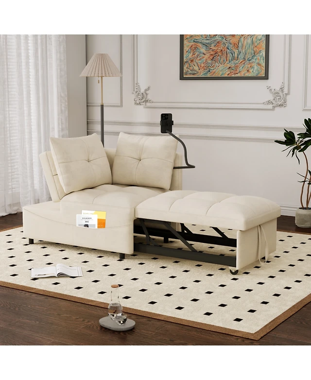 Streamdale 3-in-1 Velvet Sofa Bed with Usb, Phone Stand, and Adjustable Back (Beige)