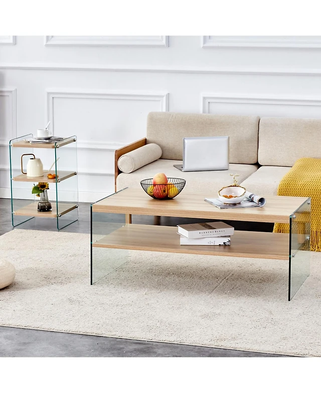 Tempered Glass Coffee Table Accent Cocktail Side Table Living Room Furniture
