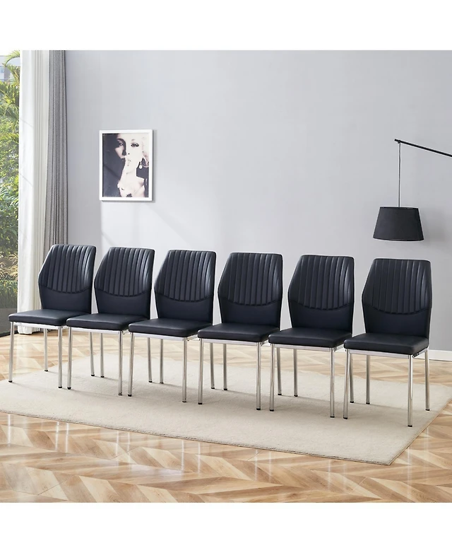 Streamdale Black Pu Dining Chairs - Set of 6, Silver Legs, Stripe Back