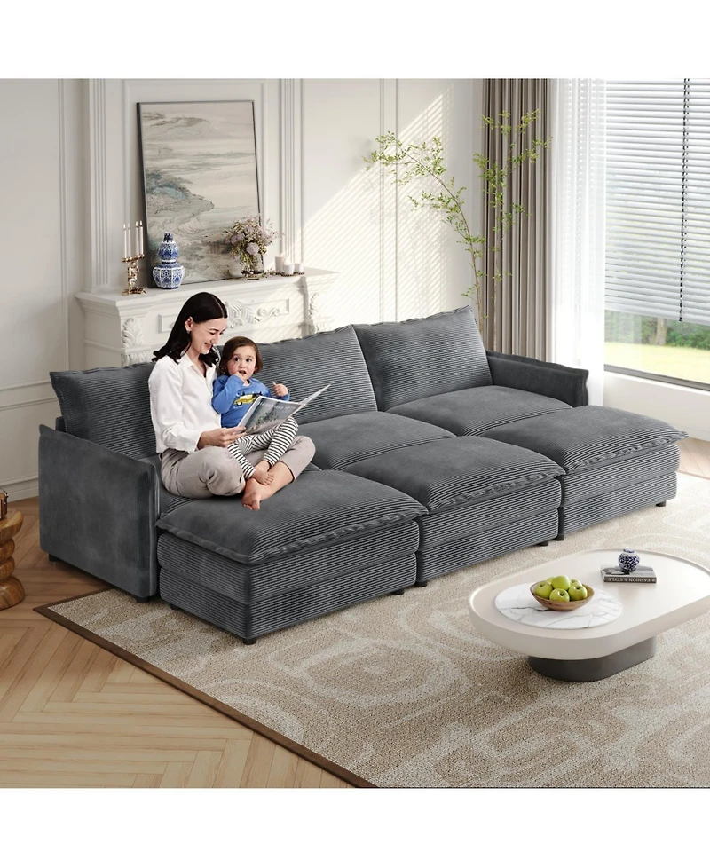 Streamdale Corduroy Cloud Sofa with Footrests & Cushions