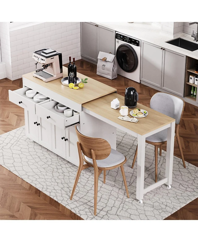 Streamdale Furniture K&K 74.5" Kitchen Island with Extendable Table Spice Rack Drawers & Cabinet