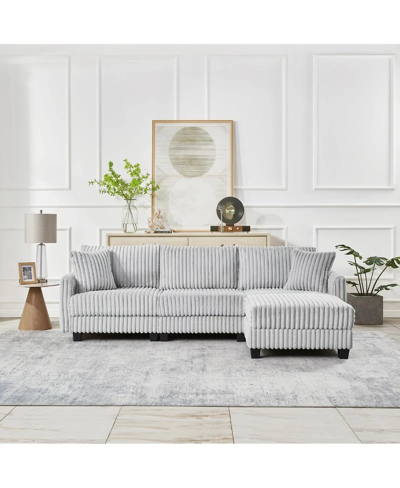 Streamdale Furniture 100-inch L-shaped corduroy sofa with modular seating and built-in charging ports