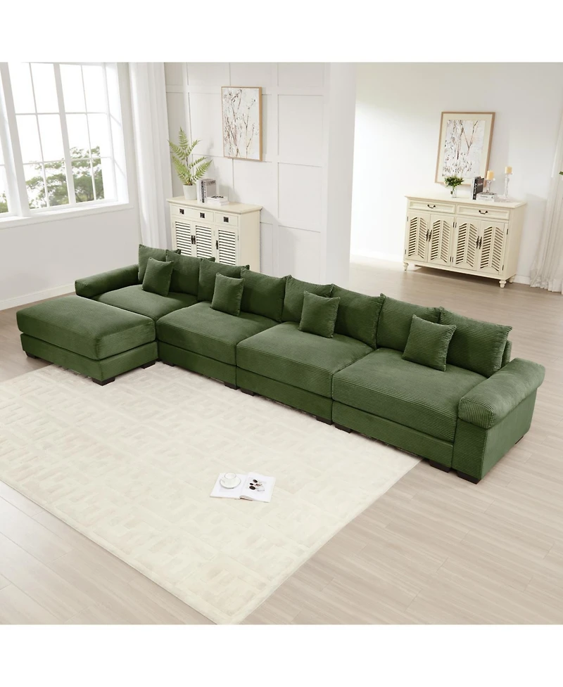 Streamdale Furniture 170" Oversized Cloud Modular L-Shape Sectional Couch, Soft Corduroy, Green