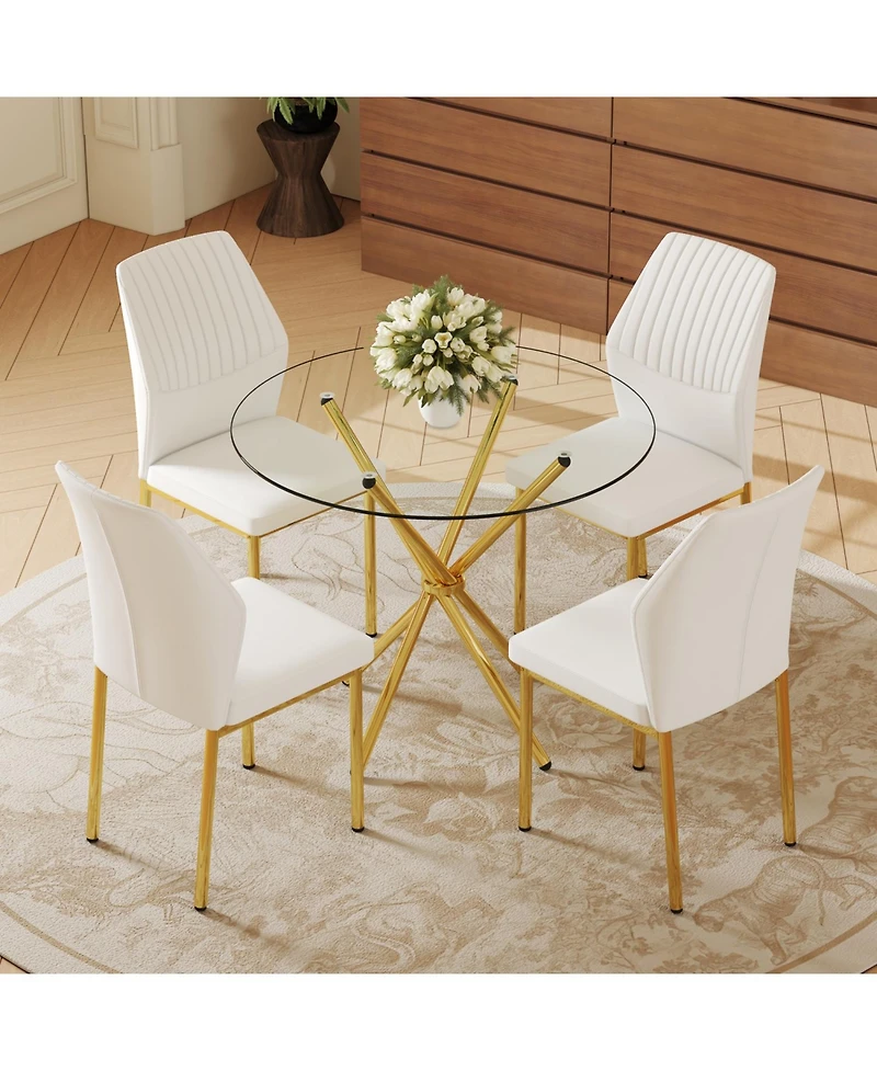 Streamdale Furniture 4-Piece Round Glass Dining Set with White-Gold Chairs