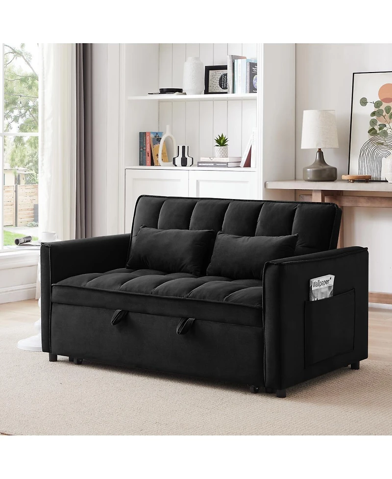 Versatile velvet sofa bed: use as loveseat, bed, or lounge chair. Features adjustable back, high-density foam, and 2 pillows. Easy assembly. Perfect for small spaces.