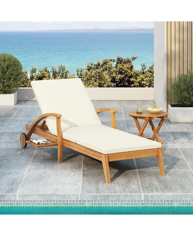 Streamdale Acacia Wood Chaise Lounge with Adjustable Cushions
