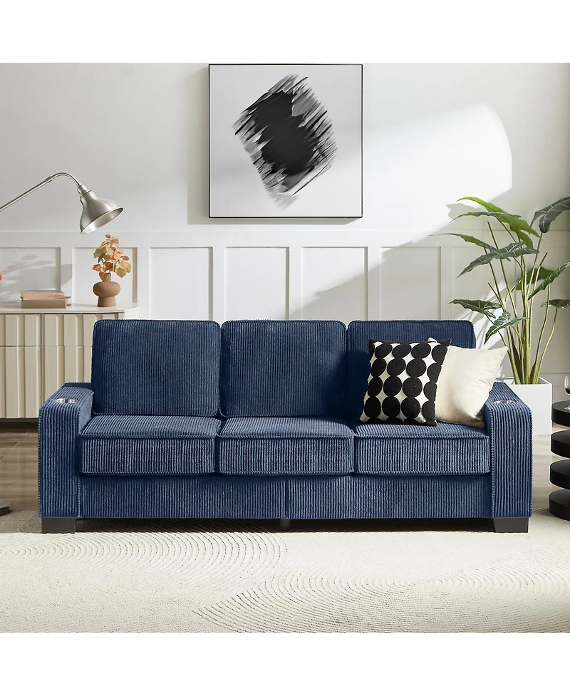 Streamdale Furniture Corduroy 83.86" Modern Compressed 3-Seater Sofa for Living Room