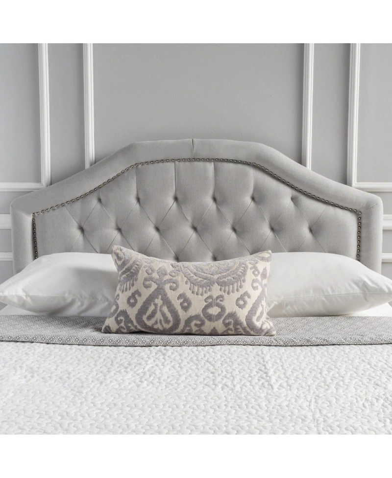 Introduce elegance and tranquility to your bedroom with this headboard. Its studded seams, iron legs, and contemporary style create a sophisticated ambiance. The button tufted diamond stitch and nailhead accents add a touch of glamour, while its upholstered design provides a clean and unified look. This headboard effortlessly complements any decor, transforming your space into an oasis of comfort and style.