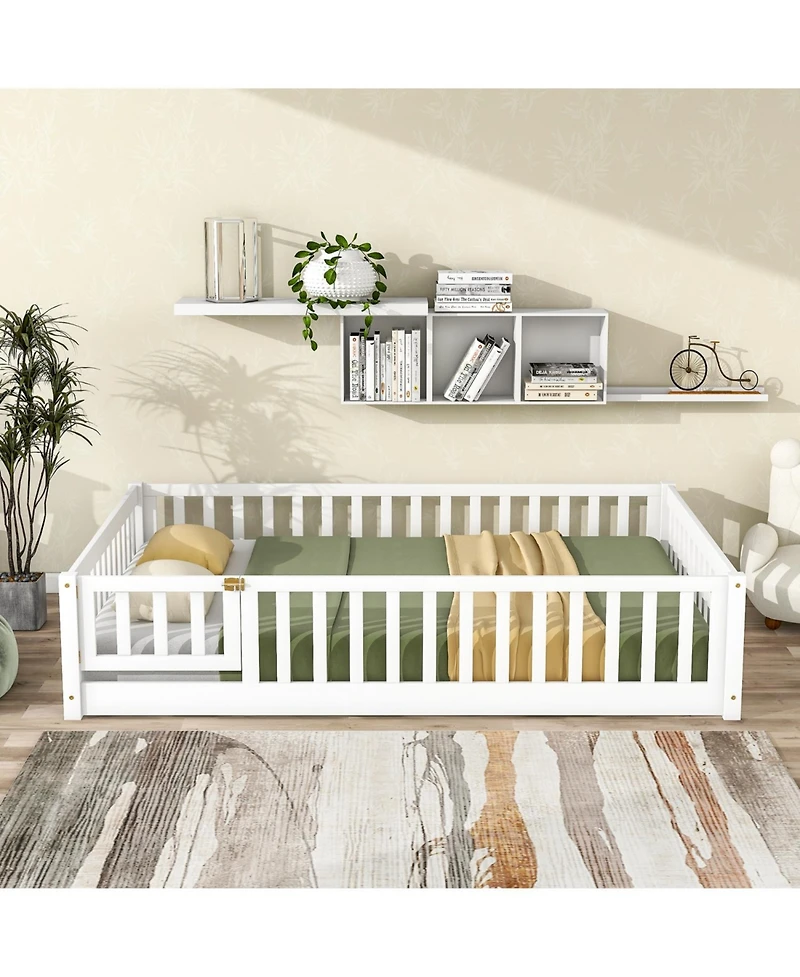 Streamdale Furniture Floor Bed with Fence & Door, Rubber Wood in Bloomington, MN