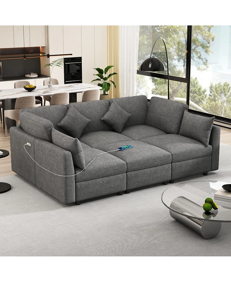 Transform your living space with this versatile grey chenille sectional sofa. Configure it as an L-shaped or U-shaped sofa, or even a sofa bed. Features a movable ottoman, two Usb ports, and comfortable high-density foam cushions.