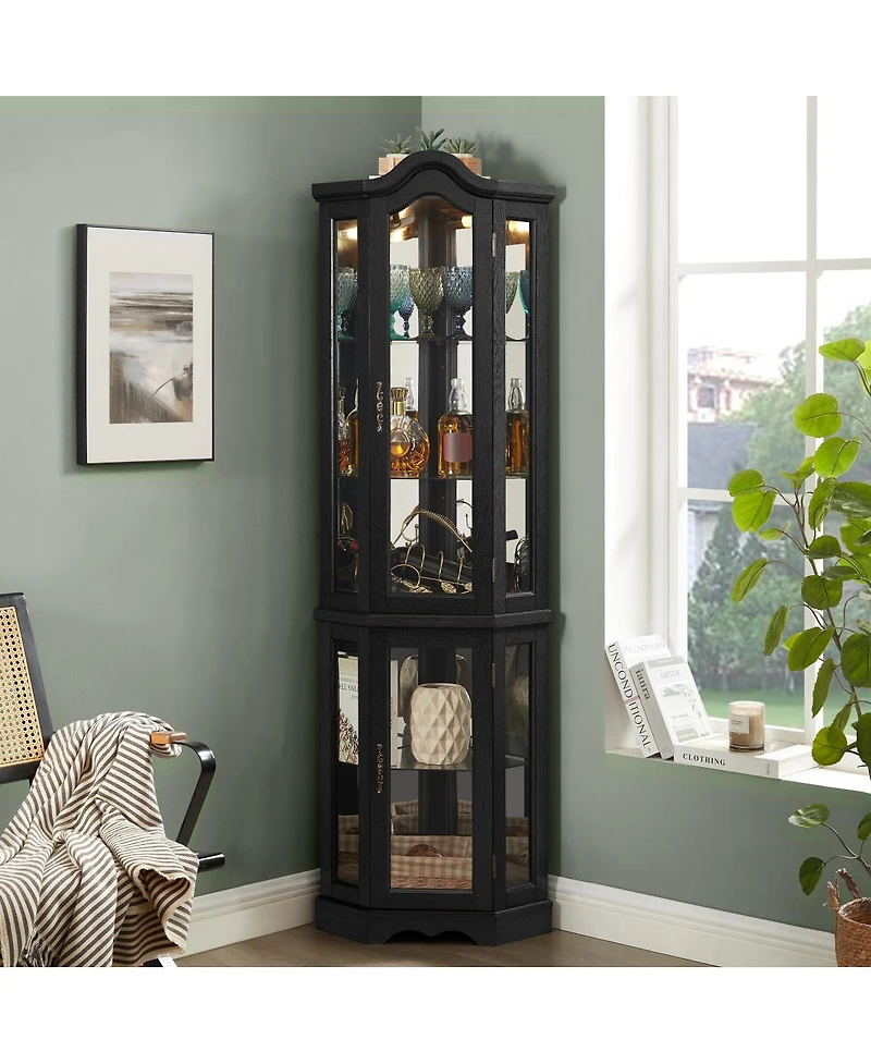 Illuminate and organize your space with this elegant glass antique cabinet. Featuring adjustable shelves, push-to-open doors, and built-in lighting, it's perfect for showcasing collectibles.