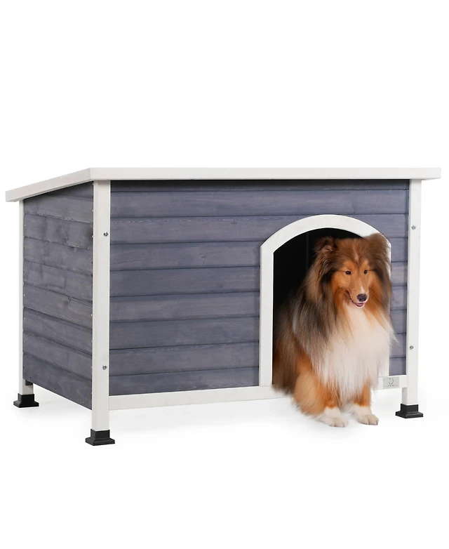 Streamdale Furniture Medium Wooden Outdoor Dog House Waterproof Roof Elevated Floor Grey