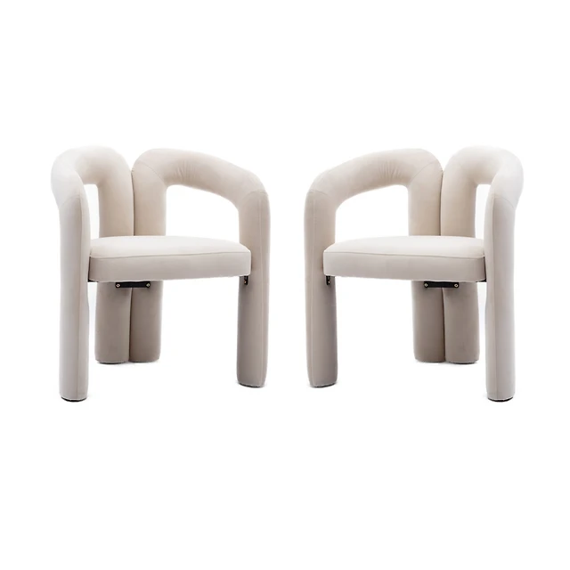 Streamdale Furniture Upholstered Dining Chairs Set of 2, White Boucle Fabric, Modern Armchairs