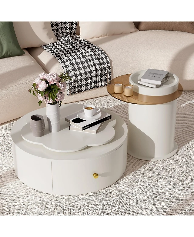 Streamdale Furniture Modern Round Coffee Table Set, Rotatable Top & Drawers