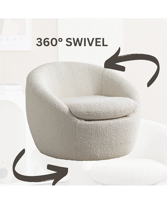 Streamdale Furniture 30.3"W Boucle Swivel Accent Barrel Chair & Round Sofa Chair