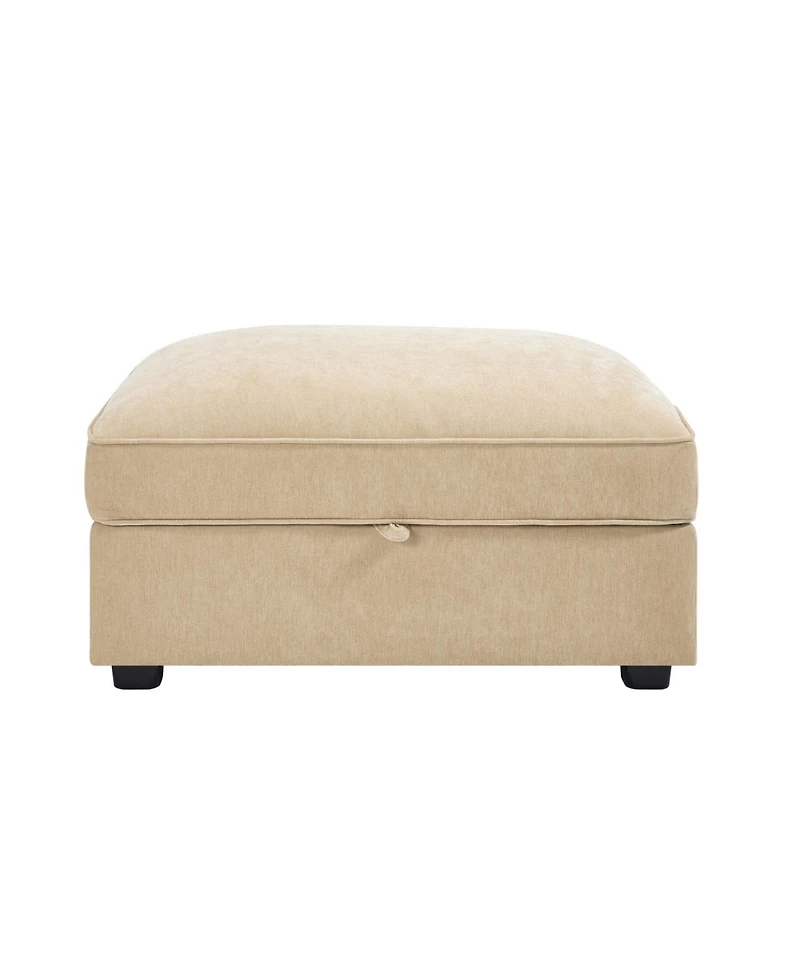 Space-saving crescent sofa with hidden storage! Soft Chenille fabric, piping details, and multiple sizes/colors (wheat, green, gray, orange).