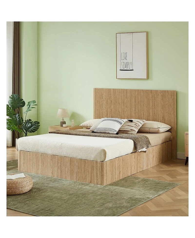 Streamdale Furniture Queen Oak Hydraulic Lift Storage Bed Frame