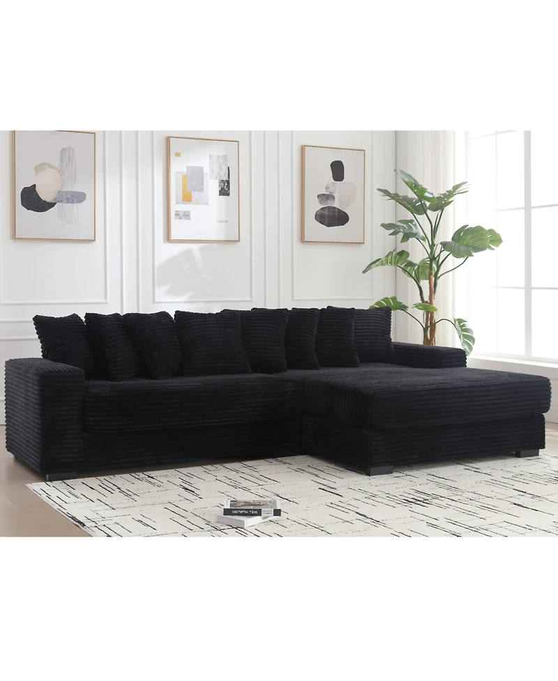 Streamdale Furniture Streamdale Oversized Corduroy L Shaped Sofa with Chaise, Pillows, Corner Sofa - Black in Bloomington, MN