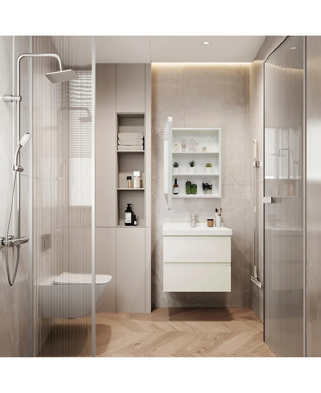 Recessed White Metal Medicine Cabinet with Mirror and Shelves