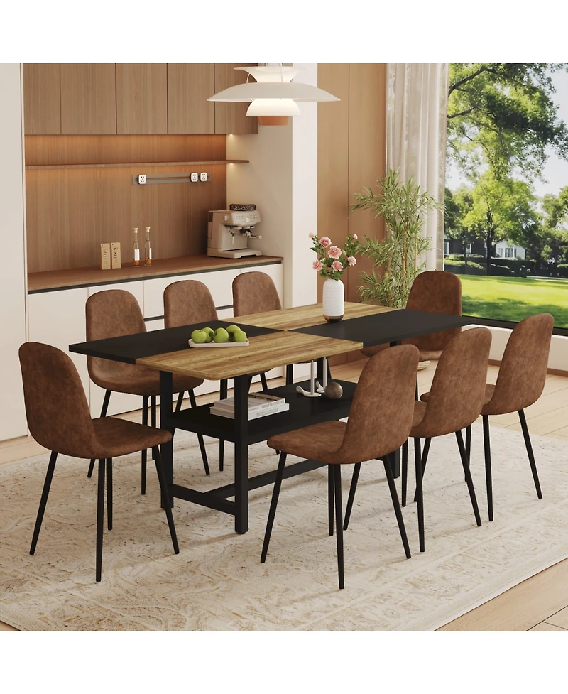 Streamdale Furniture Streamdale Wooden Dining Table Set with 8 Brown Chairs
