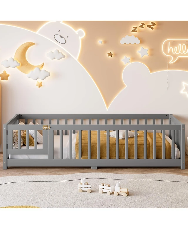 Streamdale Furniture Twin Floor Bed with Fence & Door, Grey