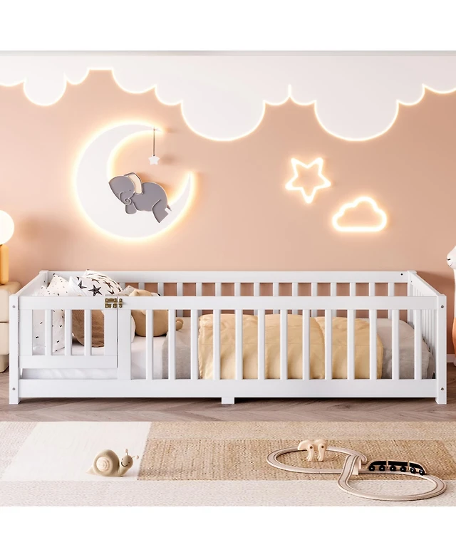 Streamdale Furniture Twin Montessori Floor Bed with Slats, Guardrails, and Fence