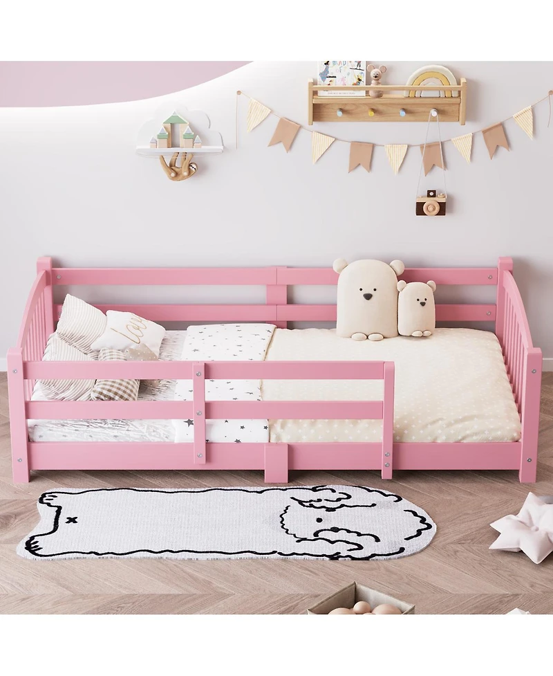 Streamdale Furniture Twin Montessori Floor Bed with Slats, Safety Guardrails, Solid Wood