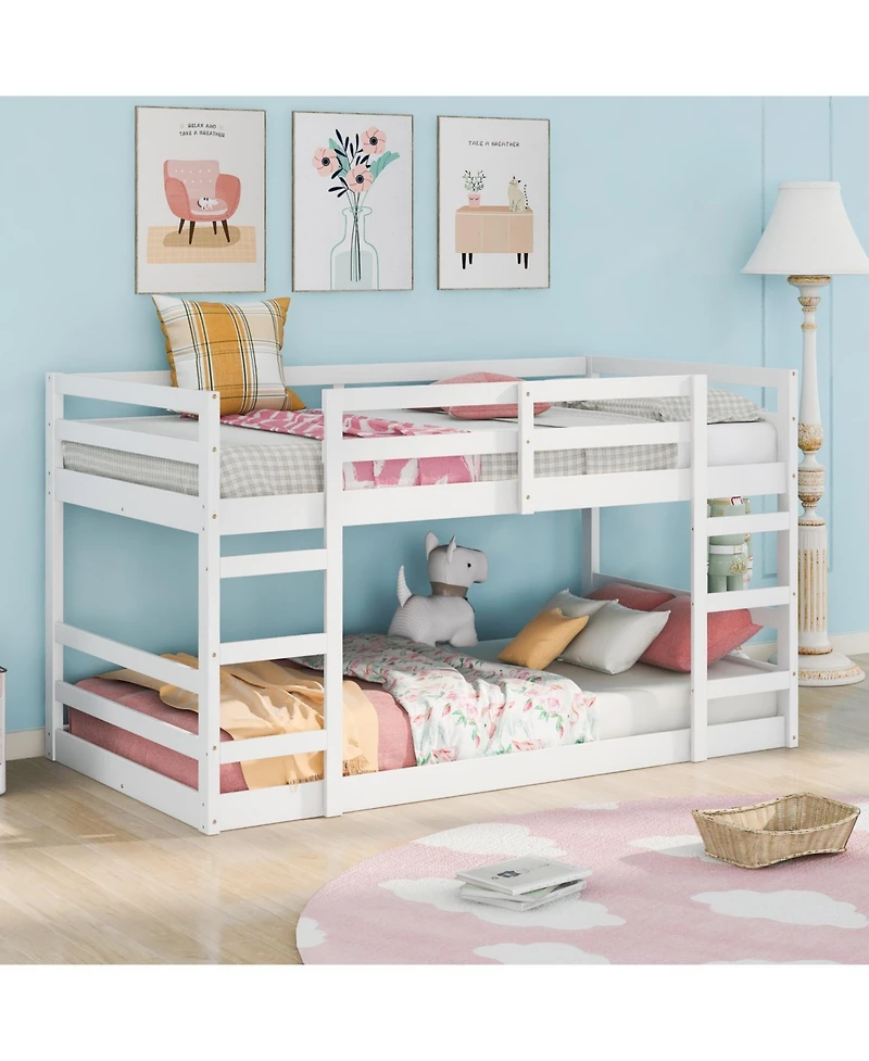 Space-saving Twin Bunk Bed: Solid pine, durable frame, and ladder. No box spring needed. White finish. (Old Sku:WF282787AAK)