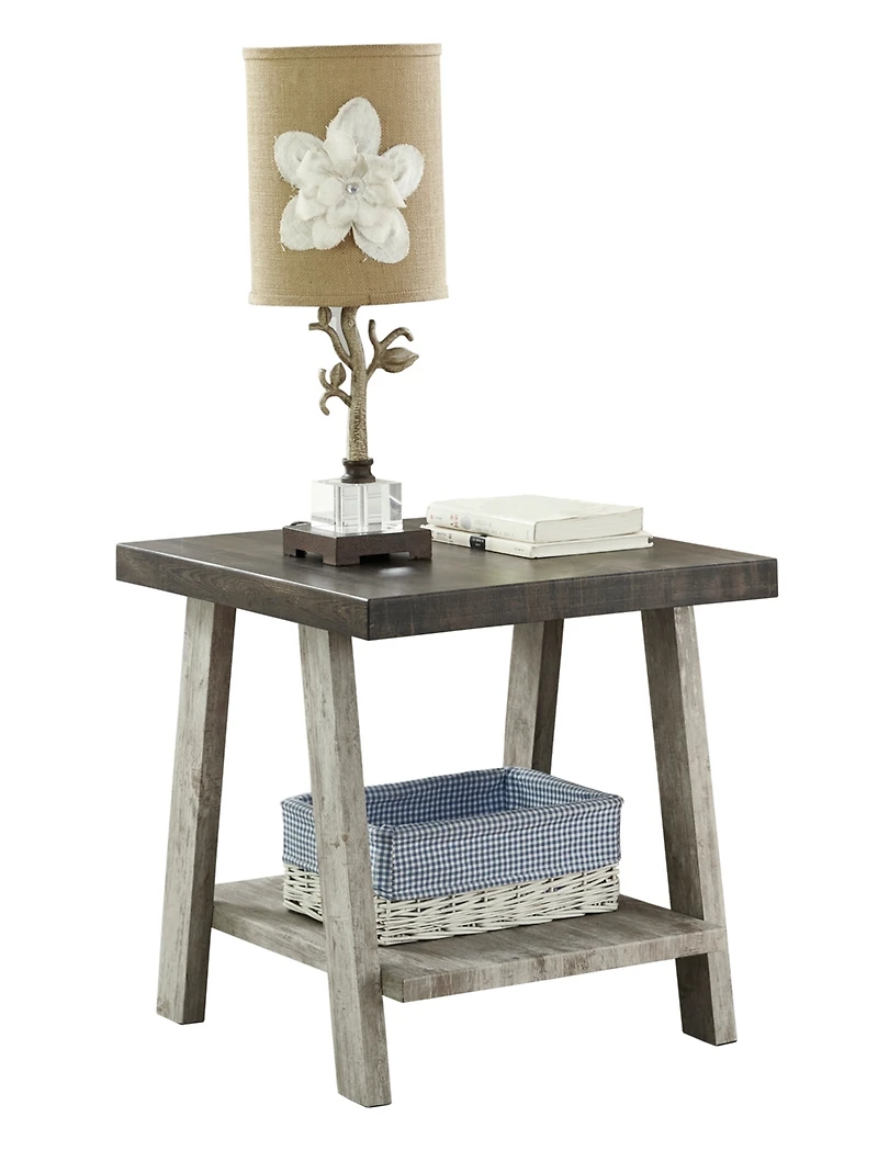 Streamdale Furniture Two-Tone Wood Shelf End Table in Weathered Walnut and Gray