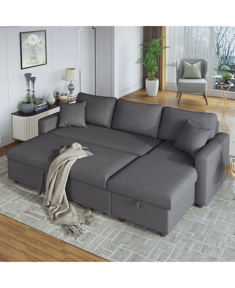 Streamdale Furniture Upholstery Sleeper Sectional Sofa With Storage Space, 2 Tossing Cushions