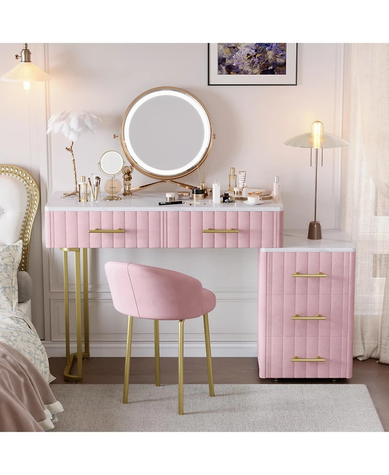 Streamdale Furniture Velvet Vanity Desk Set, Marble Top, Adjustable Storage, Pink in Bloomington, MN