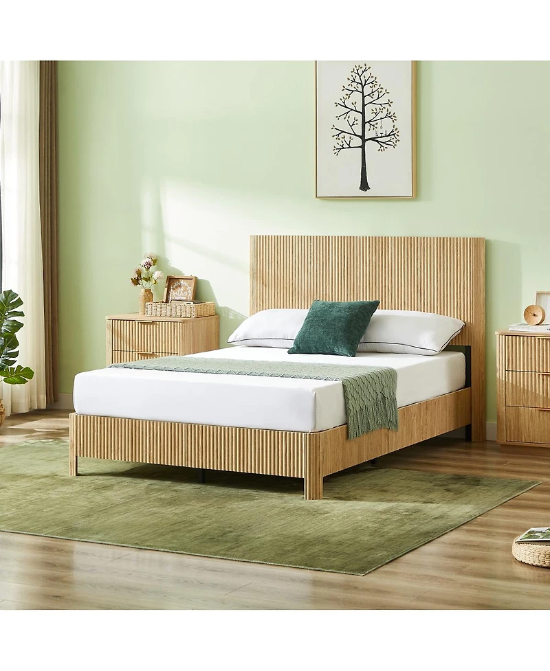 Streamdale Furniture Wooden corrugated curved lines, No Box Spring Needed