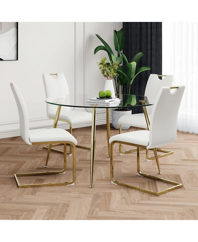 Streamdale Furniture Modern Pu Dining Chair with Gold Legs (Set of 4)